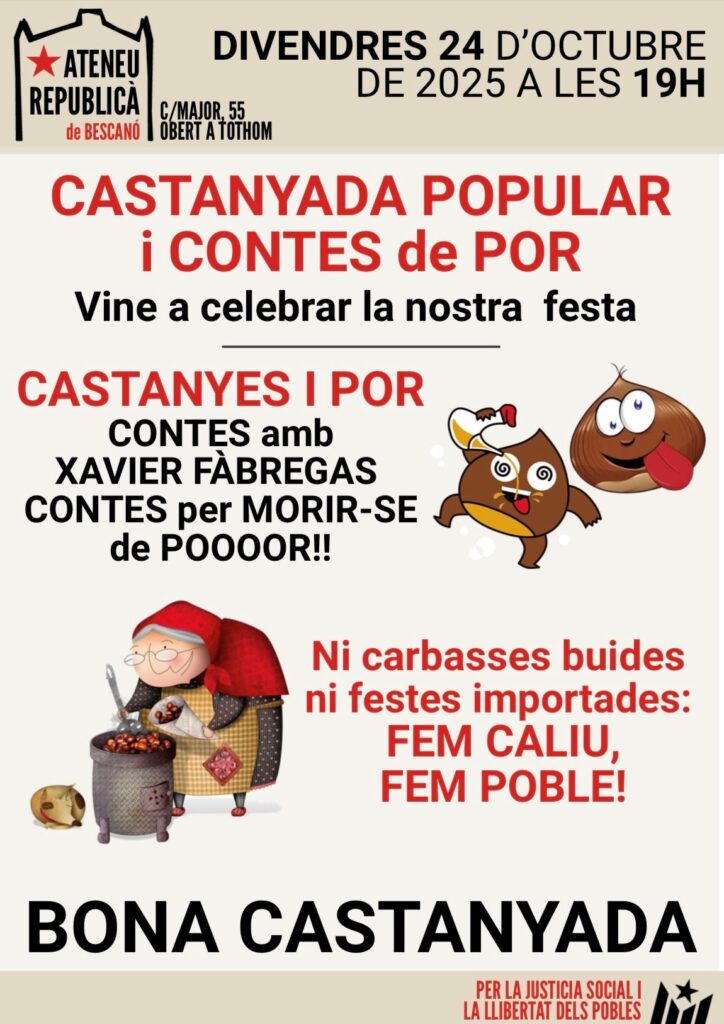 Agenda CASTANYADA POPULAR I CONTES DE POR A L’ATENEU 24/10/2025 Tradició no és passat, és identitat!. < Entrada AnteriorEntrada Posterior >