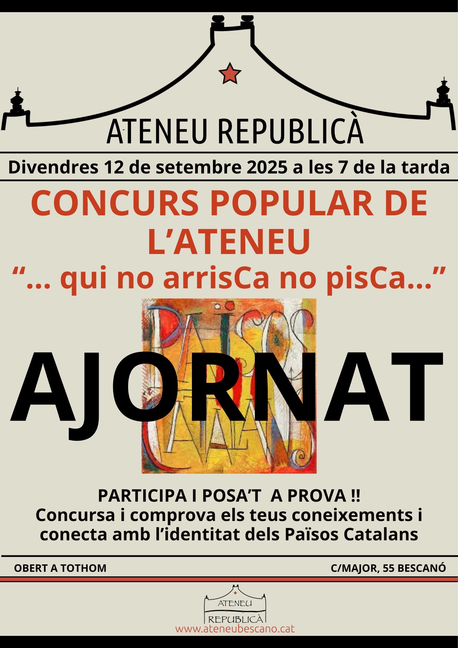 El proper divendres 5 de setembre donem inici a una nova temporada plena de ganes, il·lusió i força. Us hi esperem per compartir noves activitats, idees i moments de trobada. Per un futur lliure, compartit, solidari i combatiu!