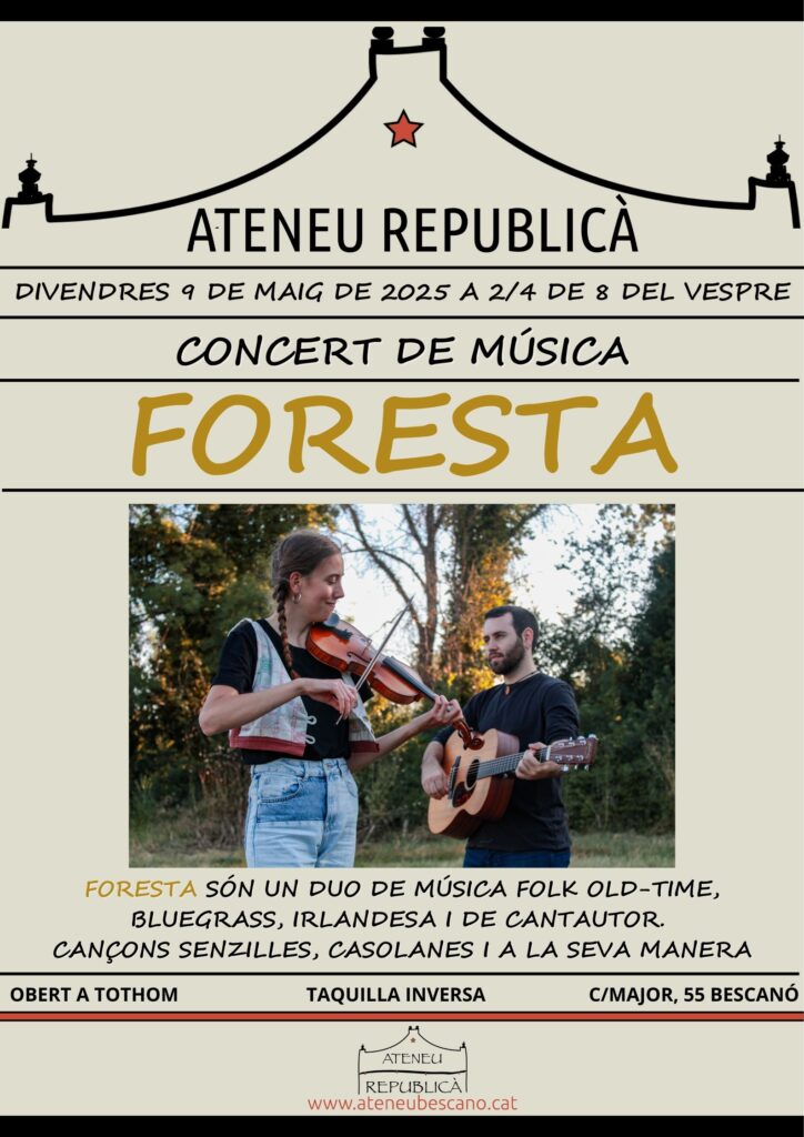 Agenda CONCERT DE MÚSICA AMB FORESTA A L’ATENEU REPUBLICÀ 09/05/2025 < Entrada AnteriorEntrada Posterior >