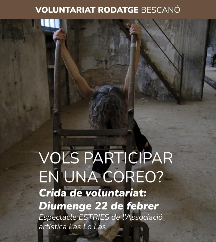 〰️ Crida de voluntariat pel rodatge d’una escena de l’espectacle ESTRIES de la companyia Las Lo Las que es durà a terme al Teatre de Bescanó el dia 7 de març.