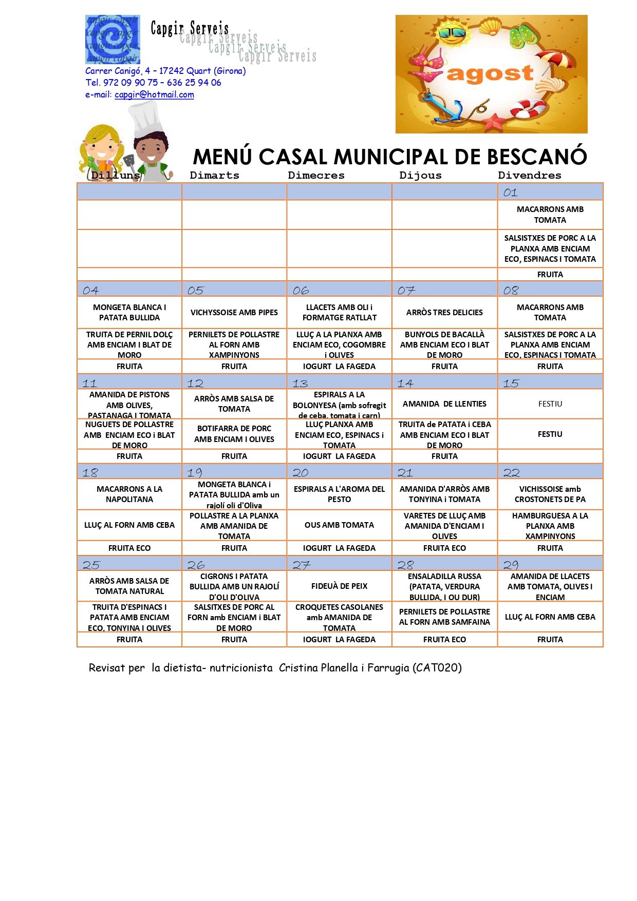 • Menú d’agost: