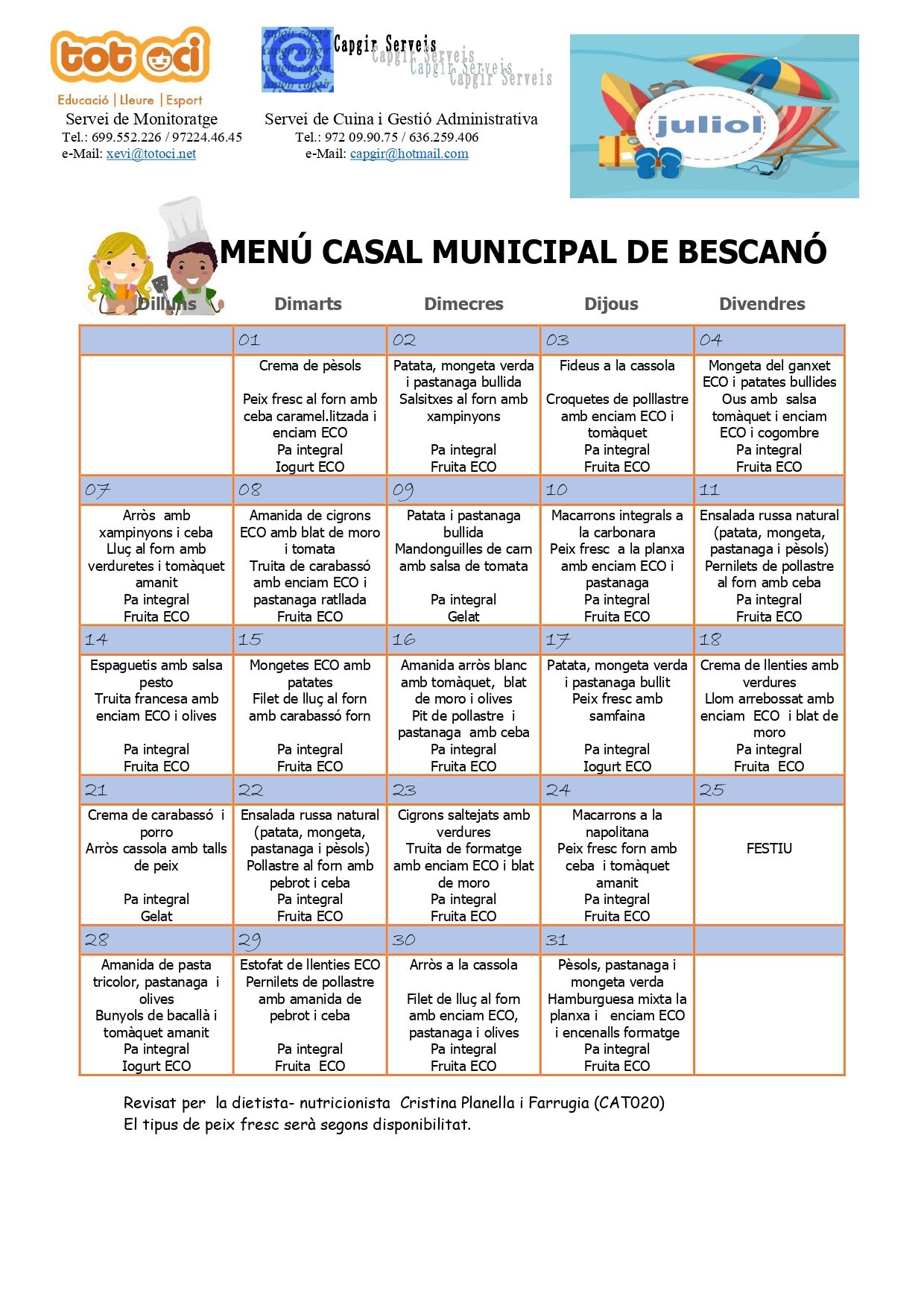 • Menú de juliol
