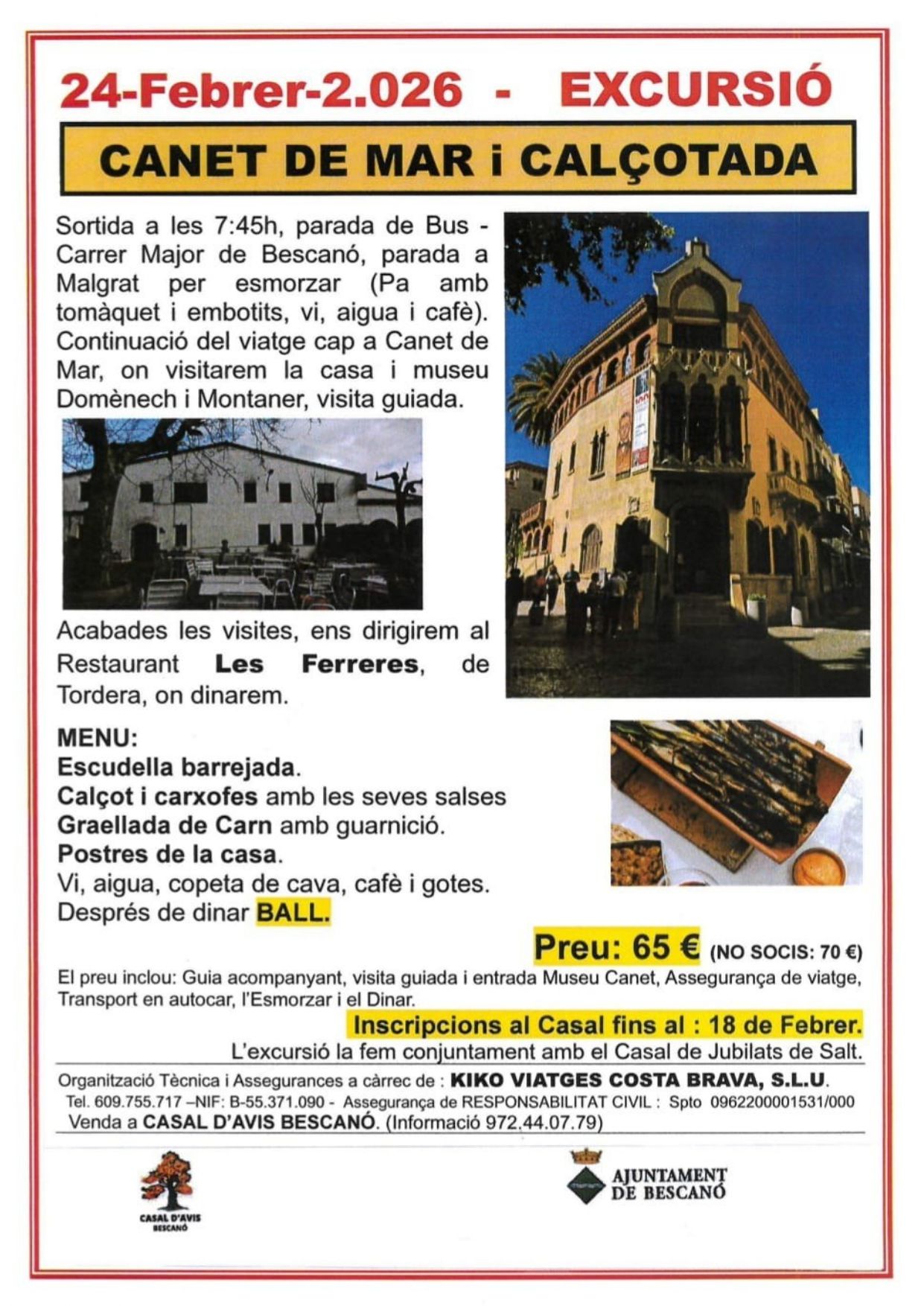 • EXCURSIÓ A CANET DE MAR I CALÇOTADA