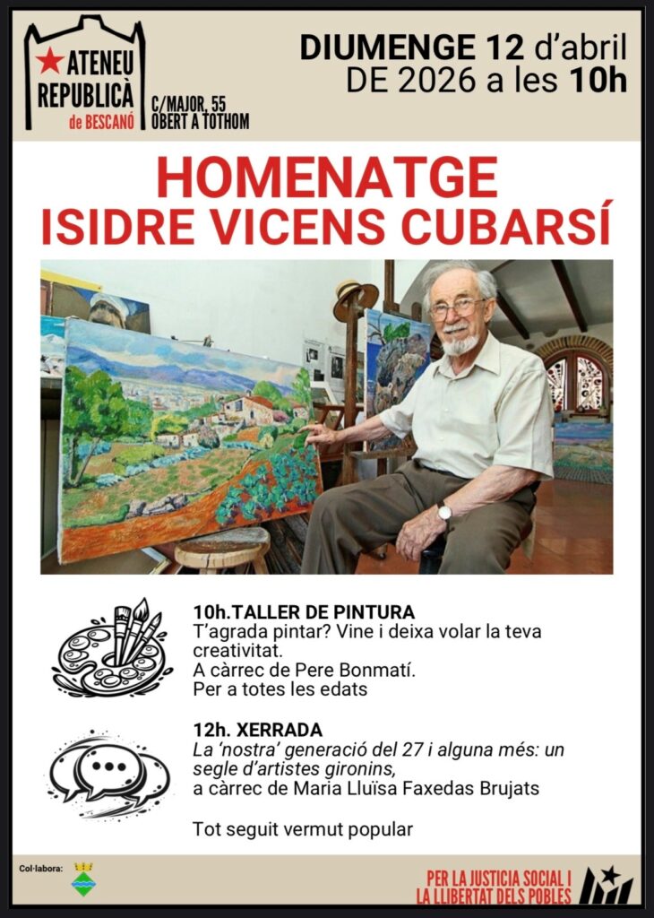 Aquest diumenge 12 d’abril, l’Ateneu ret homenatge al pintor bescanoní Isidre Vicens i Cubarsí amb un matí dedicat a l’art i la memòria.