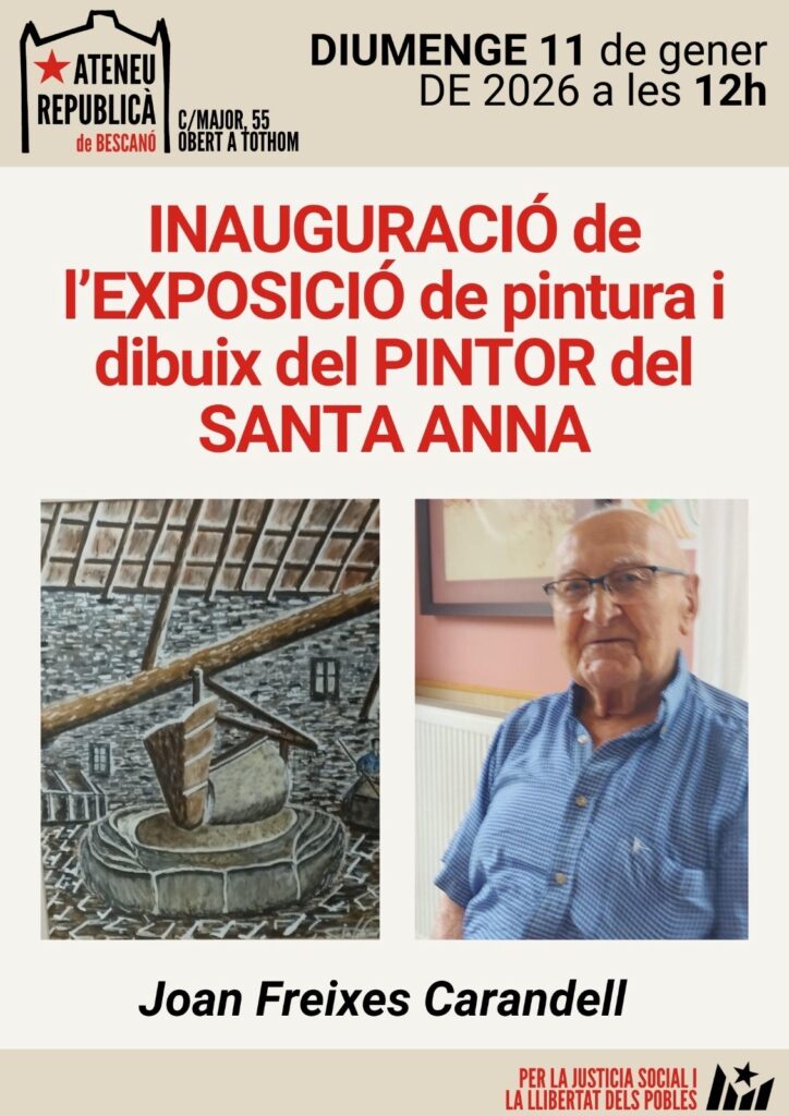 Agenda INAUGURACIÓ DE L’EXPOSICIÓ DE PINTURA I DIBUIX DEL PINTOR DE SANTA ANNA JOAN FREIXES CARANDELL 11/01/2026 < Entrada AnteriorEntrada Posterior >