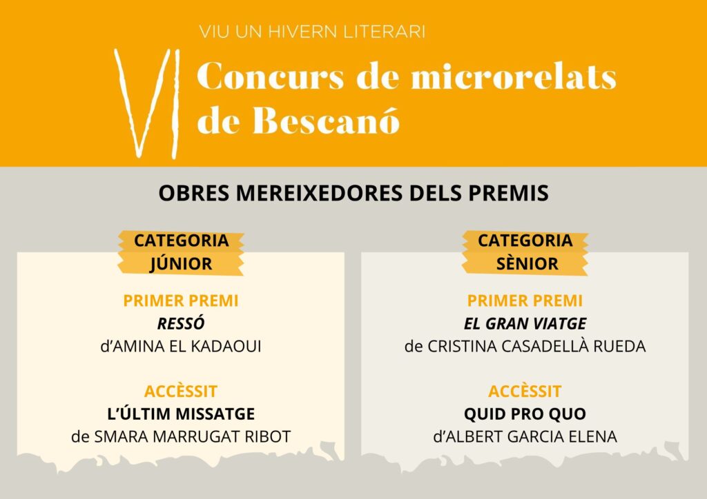 PREMIATS AL VI CONCURS DE MICRORELATS DE BESCANÓ