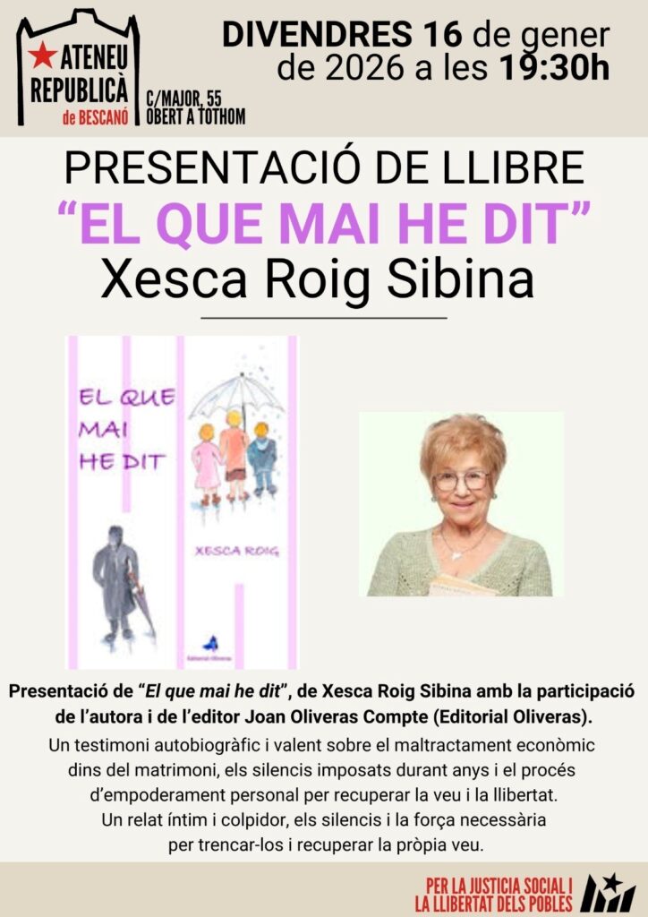 El que mai he dit, de Xesca Roig Sibina (Editorial Oliveras, 2025), és un relat en primera persona que explora la violència de gènere psicològica i emocional, marcada pel control, el silenci i la manipulació. La història mostra com trencar aquest silenci transforma la veu i la identitat de la víctima, oferint una mirada intensa i íntima sobre la recuperació i l’autonomia personal.