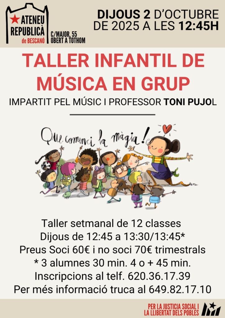 Estàvem preparats per començar dijous 2 d’octubre, però esperarem un parell de setmanes per animar més nens i nenes a unir-se. Vine a cantar, tocar i passar-ho genial amb altres infants: com més sigueu més divertit us ho passareu