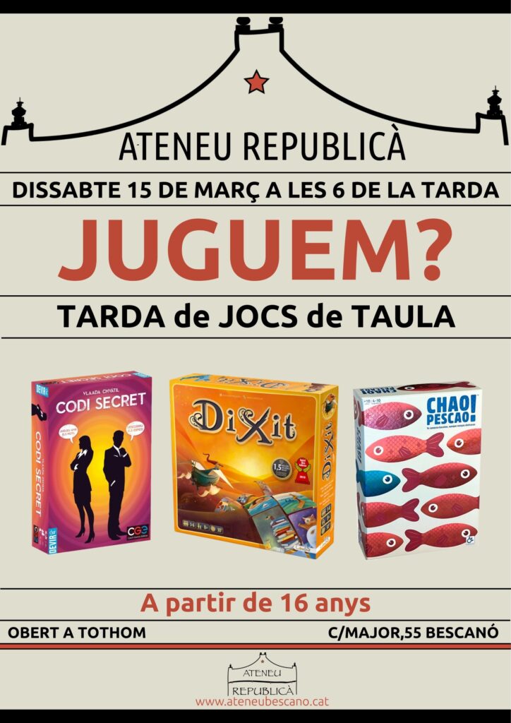 • TARDA DE JOCS DE TAULA A L’ATENEU REPUBLICÀ