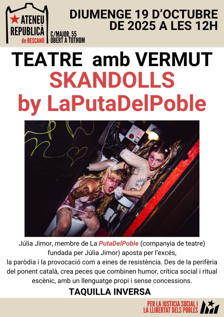Agenda TEATRE AMB VERMUT A L’ATENEU REPUBLICÀ DE BESCANÓ 19/10/2025 < Entrada AnteriorEntrada Posterior >