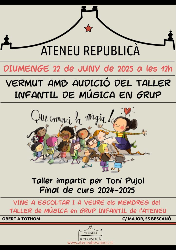 Agenda VERMUT AMB AUDICIÓ DEL TALLER INFANTIL DE MÚSICA EN GRUP INFANTIL DE L’ATENEU 22/06/2025 < Entrada AnteriorEntrada Posterior >